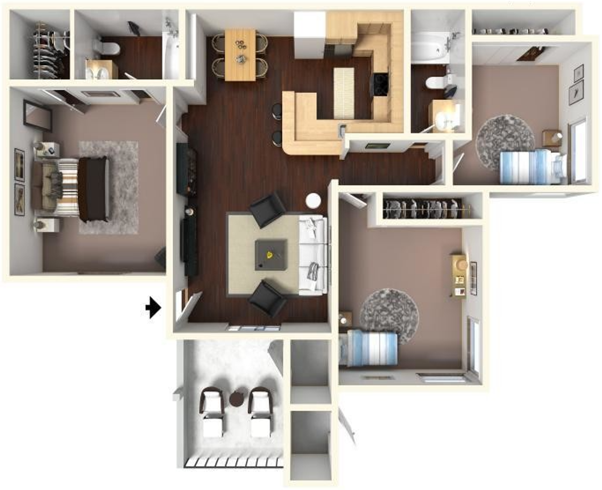 Our two-bedroom, two-bath apartment homes offer spacious layouts designed for comfort and convenience. These homes feature air conditioning, a dishwasher, an in-unit washer and dryer, and designated parking. Residents have access to community amenities including a pool, playground, multiple grassy areas, and a shared laundry facility.