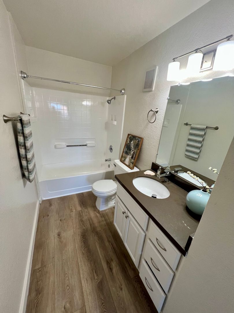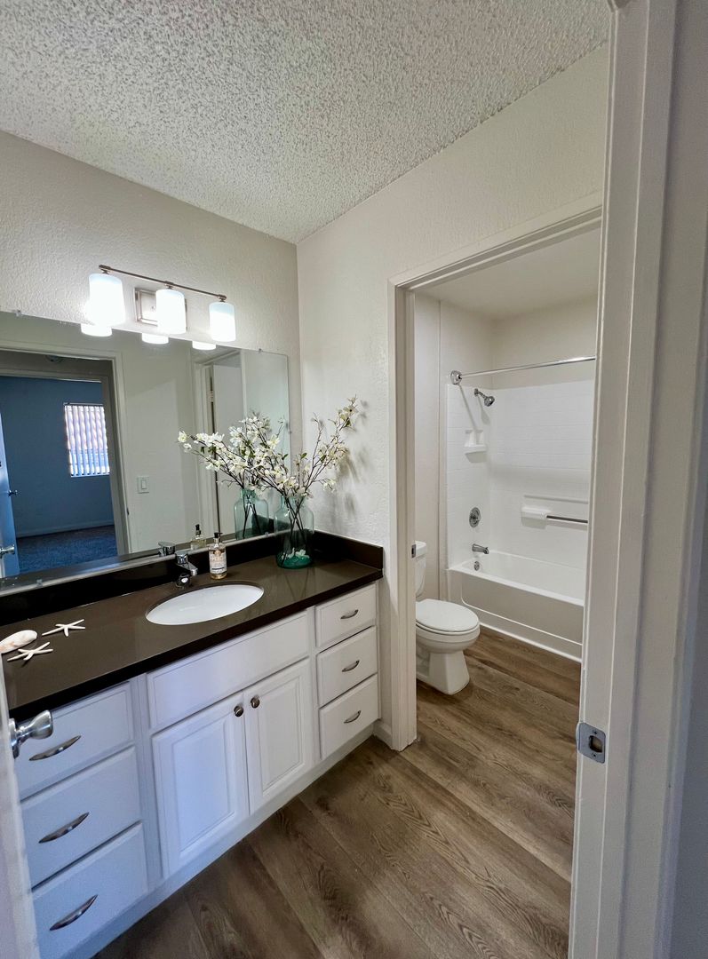 Our two-bedroom, two-bath apartment homes offer spacious layouts designed for comfort and convenience. These homes feature air conditioning, a dishwasher, an in-unit washer and dryer, and designated parking. Residents have access to community amenities including a pool, playground, multiple grassy areas, and a shared laundry facility.
