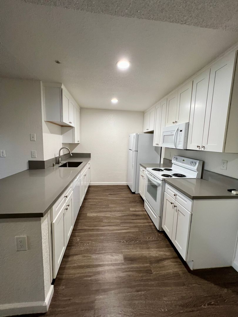 Our two-bedroom, two-bath apartment homes offer spacious layouts designed for comfort and convenience. These homes feature air conditioning, a dishwasher, an in-unit washer and dryer, and designated parking. Residents have access to community amenities including a pool, playground, multiple grassy areas, and a shared laundry facility.